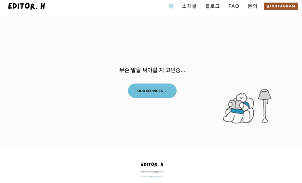 그렇게 시작된 3주였다. 내가 하고 있는 일들을 기록하고, 자연스럽게 나를 브랜딩하고, 가능하면 수익화도 이어가보자는 마음으로. 막상 시작하니 뭘 올려야 할지도 막막했다. 로고 정하고, 그림 그릴 시간은 없어서 이미지 주워다 집어넣고, 꼭 나중에 수정해야지 했는데 결국 3주가 지난 지금도 메인 화면엔 이렇게 쓰여있다.